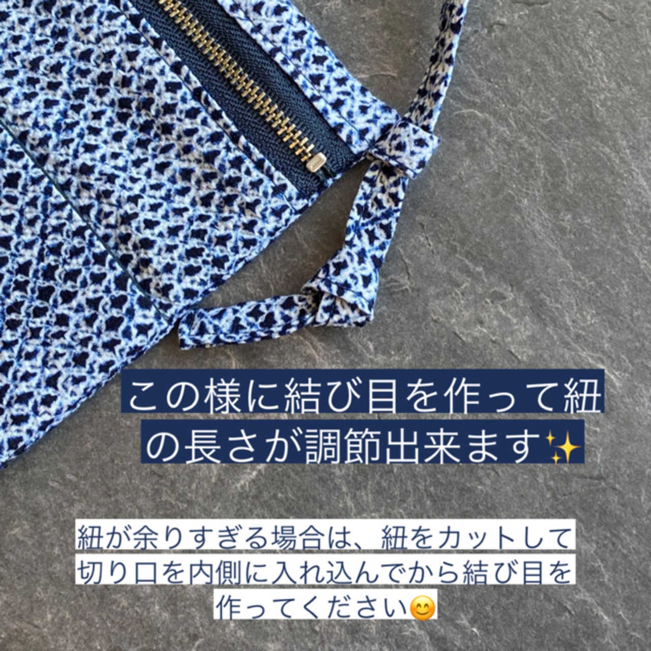 肩紐は長めに作っておりますので結び目で調節可能ですので、子供から大人までお使いいただけます!