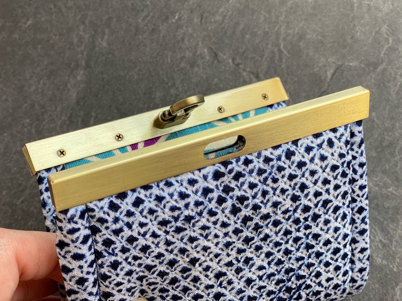 開け口は、直線の文鎮口金を使用しています。色はアンティークゴールドです。